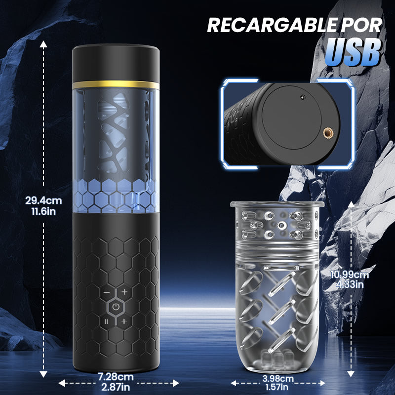 Accessori: 1 dispositivo per masturbazione, 1 ventosa, 1 cavo di ricarica USB