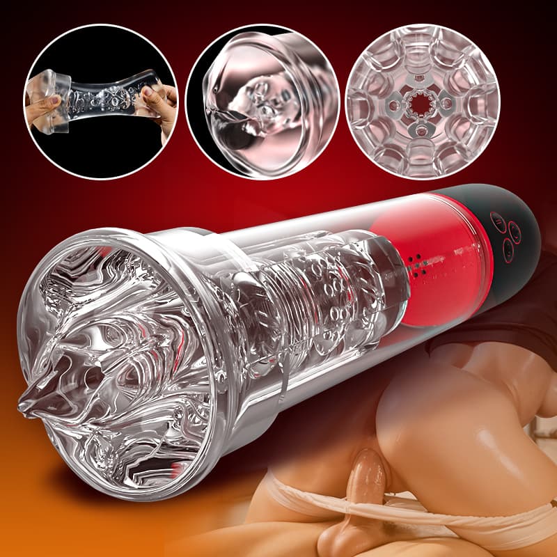 La continua suzione della pompa del pene ti dà una sensazione diversa. Questa pompa per il pene può garantire l'ingrandimento del pene e avere la migliore esperienza di masturbazione. La forte vibrazione della pompa del pene stimolerà il tuo pene. Molte protuberanze spesse massaggiano e strofinano il tuo pene nel canale dell'amore trasparente.