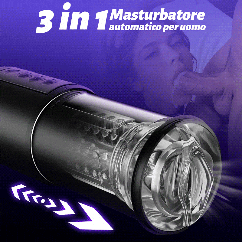 Torcia Elettrica Masturbatore Cup 3 in 1 ha 5 modalità di aspirazione e telescopica e 10 modalità di vibrazione, con il cedimento stretto e l'innalzamento della vulva, stimola il glande più sensibile e ti fa scoppiare nelle onde del climax.