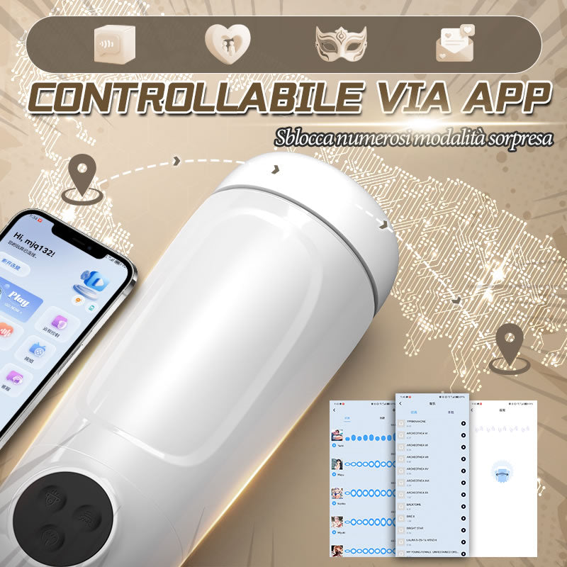 Combina stimolazione con un solo pulsante, suzione, vibrazione, massaggio stimolante in diversi punti, controllo tramite APP, camera d'aria altamente elastica, allenamento del pene e altre funzioni.